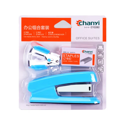 创易(chanyi)订书机起钉器24/6订书针常用中小型装订机办公财务装订用品组合套装 {蓝色/绿色}颜色随机,三合一组合套装
