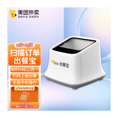 美团点评 美团出餐宝 外卖扫码出餐上报指派骑手饿了吗么出餐自动感应闪电上报条码扫描仪扫码盒子 美团外卖出餐宝WiFi+4G版