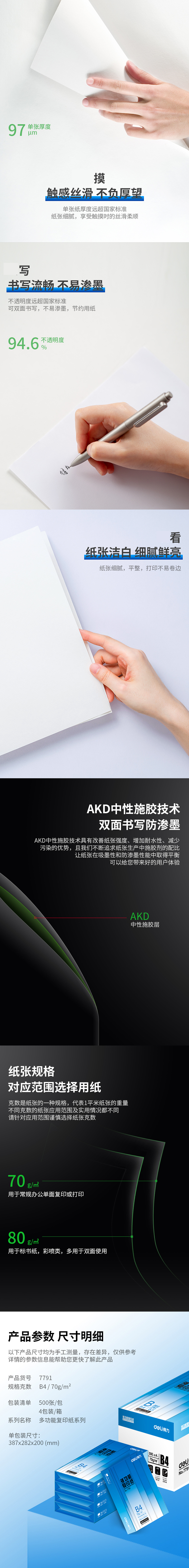 得力(deli) 7791 多功能复印纸 B4/70g 500张/包 4包/箱