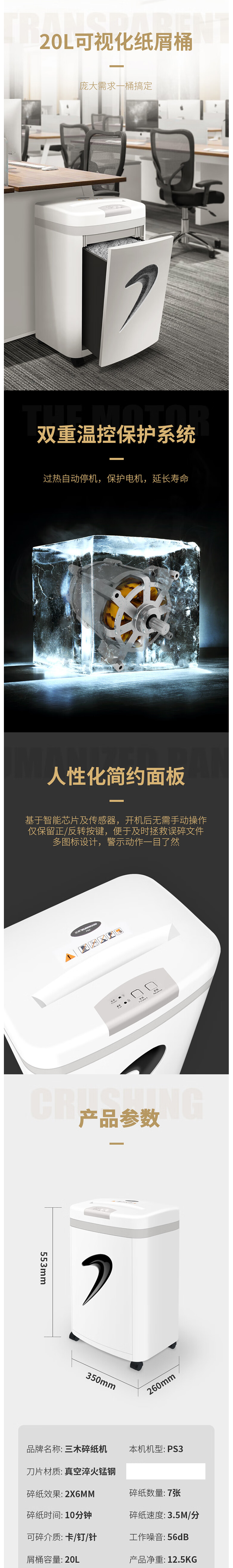 三木 PS3 碎纸机 效率王系列 20L 青灰色